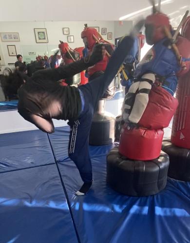 Students are taught a variety of combination strikes that involve the fist, elbow, foot, shin and knee. Every student is given a personalized training program designed to suit their skill level. The use of realistic training dummies helps students to properly strike one's opponent with maximum speed, power, and control. The techniques are geared toward mid to close range attacks that can be translated readily to street self-defense situations.